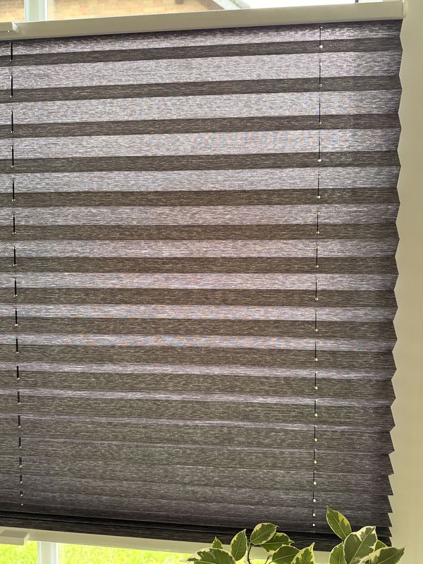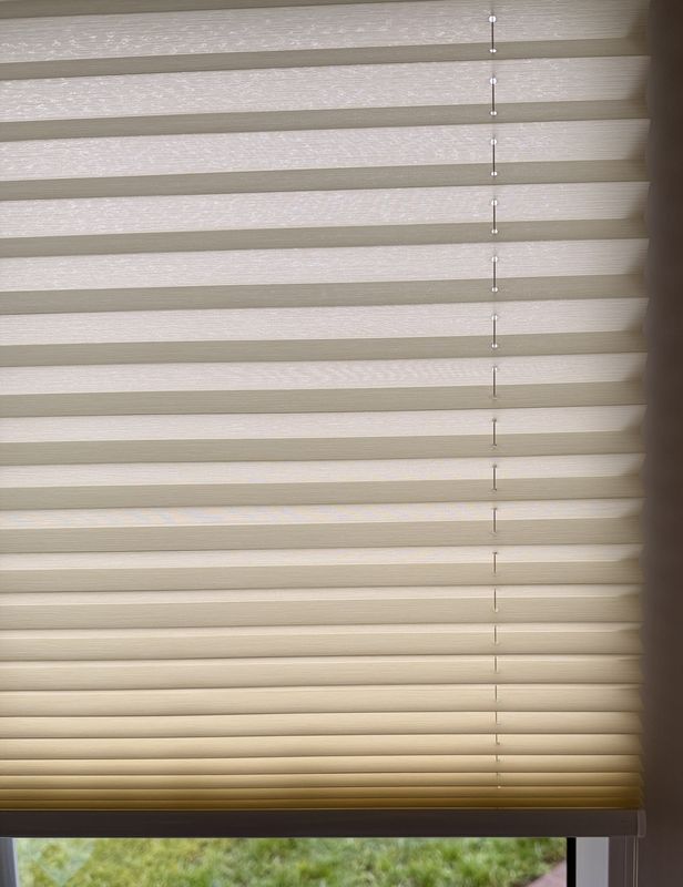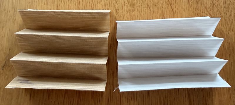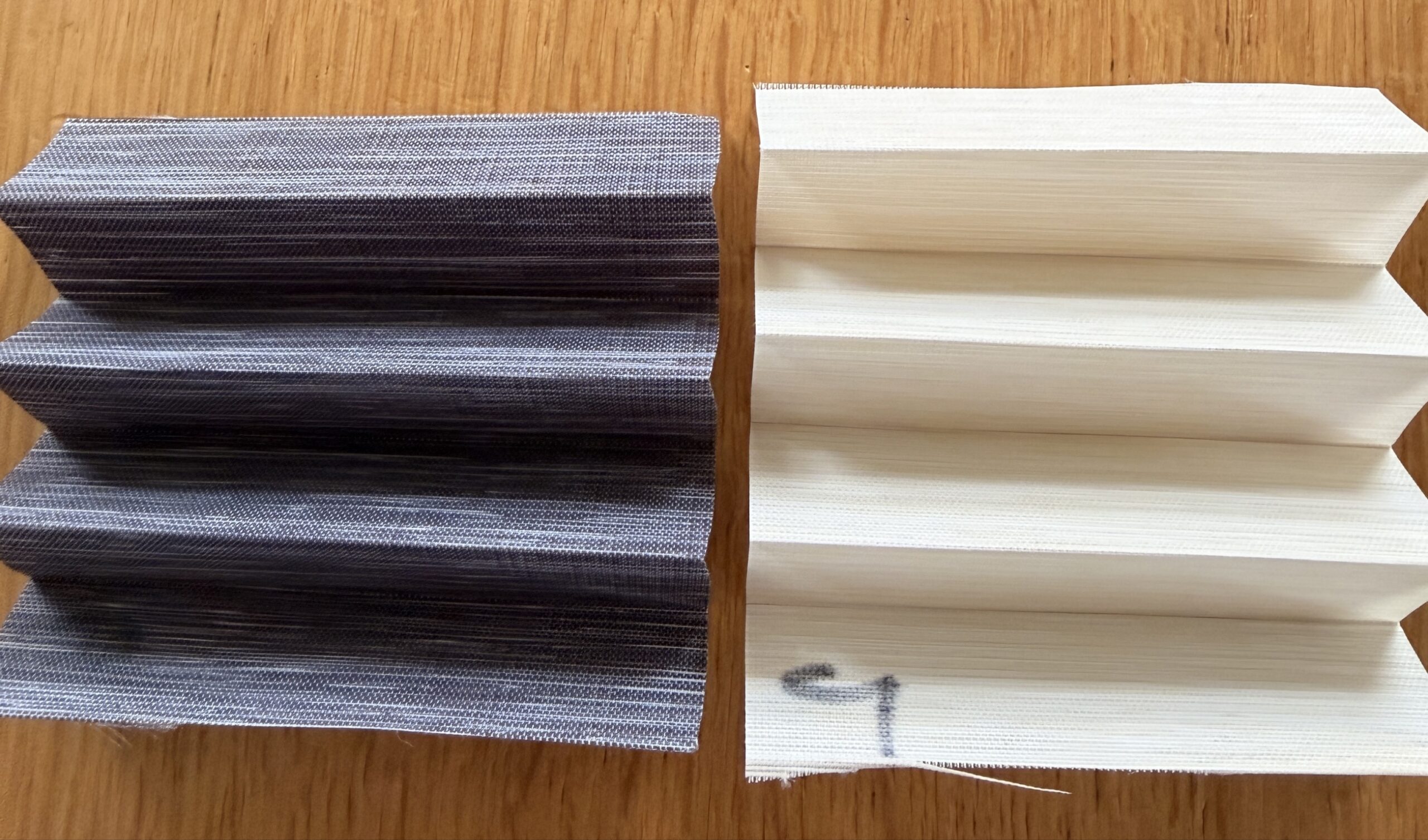 Aus all den im Schuette® Plissee Online Konfigurator erhältlichen Kollektionen ist das Besondere an der Dolomite-Kollektion die dezente Struktur des Plisseestoffs, dessen horizontal verlaufendes Muster für eine richtig gemütliche Atmosphäre sorgt. Der Stoff ist zu 100 % blickdicht, wobei sich die jeweiligen Lichtwerte je nach Farbwahl unterscheiden und dies entsprechend deklariert ist. Der Stoff bietet zudem einen gewissen UV-Schutz, so dass Möbel oder sonstige Einrichtungsgegenstände vor Verblassen geschützt sind. Das ist für uns auch ein wesentlicher Aspekt, denn durch so etwas mussten wir in der Vergangenheit durchaus schon mal Esszimmerstühle austauschen, da der Stoff der Rückenlehne durch die Sonneneinstrahlung völlig verblasst war. Das kann hiermit nicht, oder zumindest nicht so schnell, passieren. Schaut selbst, die Plissees machen sich prima in unserem Erker – nicht nur die Farbkombination ist klasse, sondern auch das gemütliche Ambiente, dass diese Plissees ausstrahlen ist einfach nur wunderbar.
